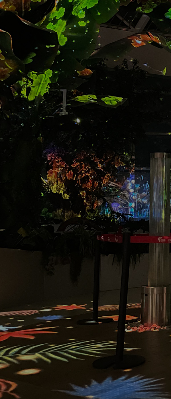 此次光影展應(yīng)用了視美樂B系列和P系列投影機(jī),憑借卓越的畫質(zhì)和穩(wěn)定的性能,為觀眾呈現(xiàn)了一個(gè)深度沉浸、栩栩如生的山海世界。山丘、水澤、草木、異獸等場景躍然眼前,帶領(lǐng)觀眾穿越時(shí)空,親歷《山海經(jīng)》中的奇幻之旅。